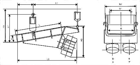 給料機(jī)的給料過(guò)程是利用特制的振動(dòng)電機(jī)或兩臺(tái)電動(dòng)機(jī)帶動(dòng)激振器驅(qū)動(dòng)給料槽沿傾斜方向作周期直線往復(fù)振動(dòng)來(lái)實(shí)現(xiàn),當(dāng)給料槽振動(dòng)的加速度垂直分量大于重力加速度時(shí),槽中的料被拋起,并按照拋物線的軌跡向前跳躍運(yùn)動(dòng),拋起和下落在瞬間完成,由于激振源的連續(xù)激振,給料槽連續(xù)振動(dòng),槽中的煤連續(xù)向前跳躍,以達(dá)到給料的目的。